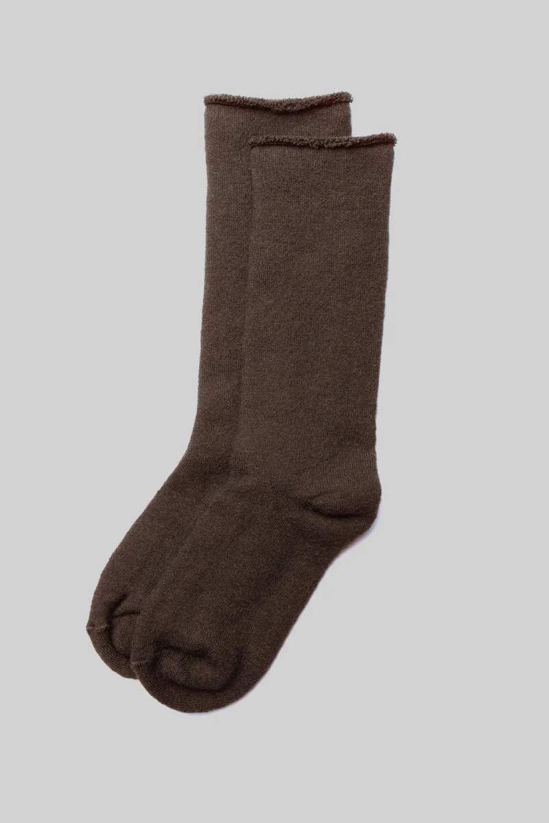 Meet the coziest companion for cooler days. Crafted from exceptionally soft and lightweight alpaca wool, the strongest and warmest of natural fibers.....these socks deliver durability without the bulk. A plush pile-knit interior adds extra cushion and insulation, while the sueded exterior creates a smooth, refined finish.