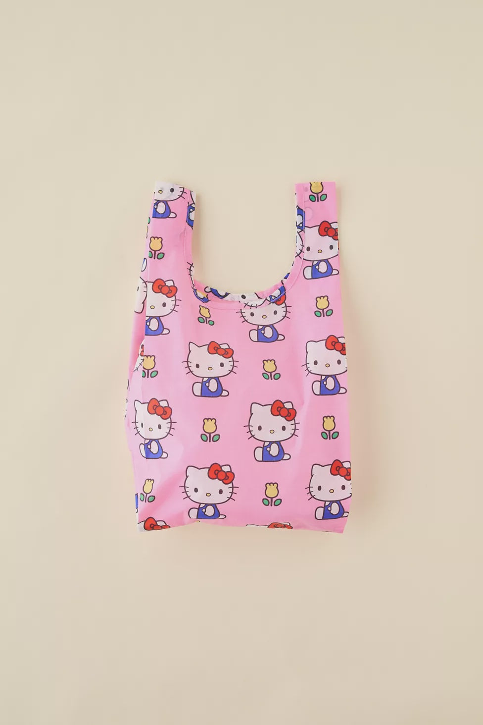 A playful twist on our classic reusable shopper, this smaller version is perfect for your lunch, a six-pack, extra shoes, or a quick corner store run. Finished with a custom stitched Hello Kitty tag and a cheerful yellow tulip pattern, it’s the cutest way to carry your essentials.