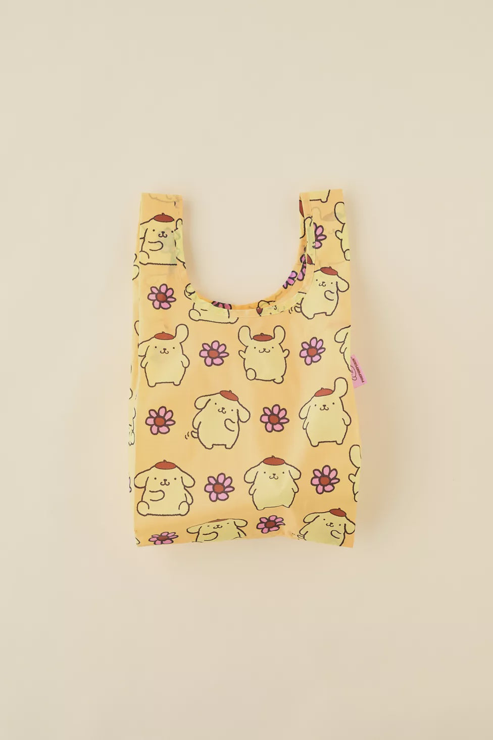Bring a little cheer to your everyday errands with this smaller version of our reusable shopper, featuring Pompompurin with sweet purple florals. Perfectly sized for your lunch, a six-pack, extra shoes, or a quick corner store run, it folds up flat so you’ll always have it on hand.