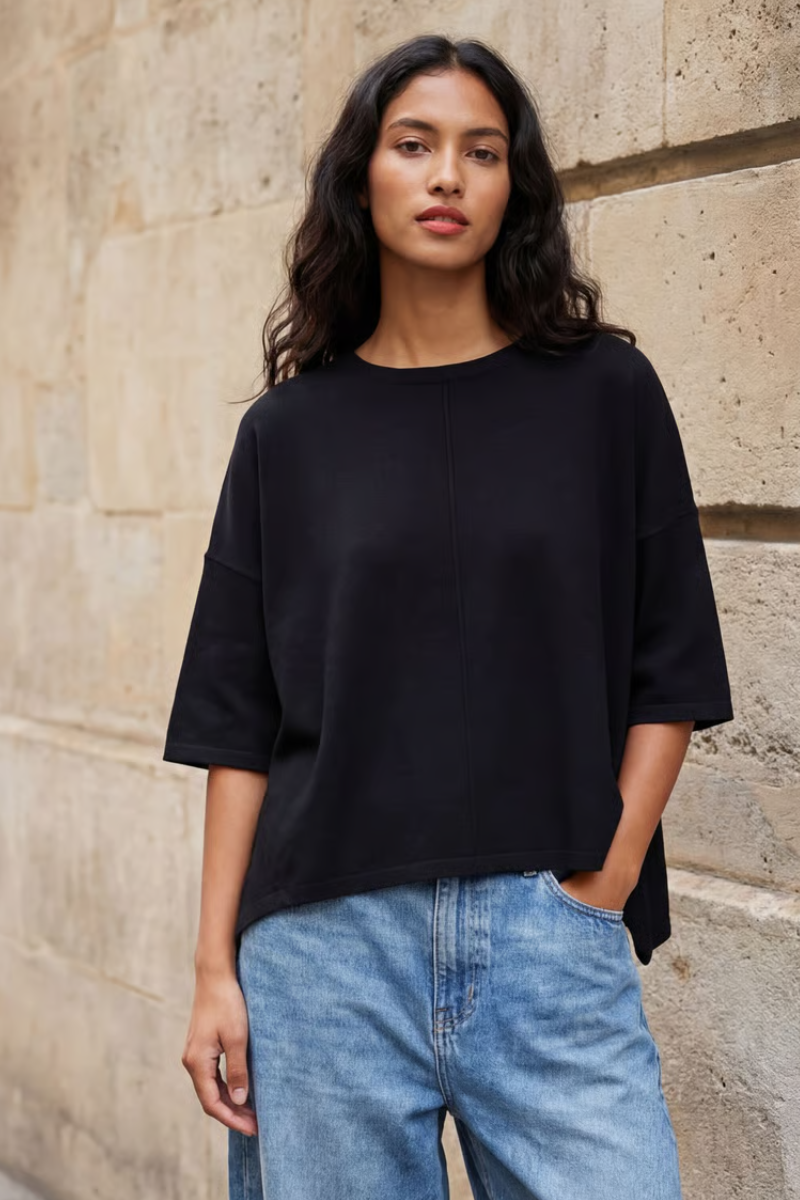 Crafted from soft, high-quality fabric, it drapes beautifully on the body while offering all-day comfort. The raglan sleeves and relaxed cut give it an easy, slouchy shape....perfect for layering or wearing solo as a statement piece.