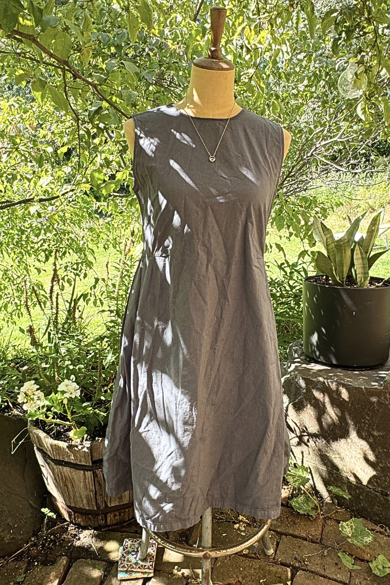 The Charbon Doux (Soft Charcoal) Dress is an understated gem of French Vintage style. Crafted from soft, medium-weight cotton in a rich charcoal tone, this piece dates from approximately 1930–1950, blending utilitarian simplicity with timeless elegance.
