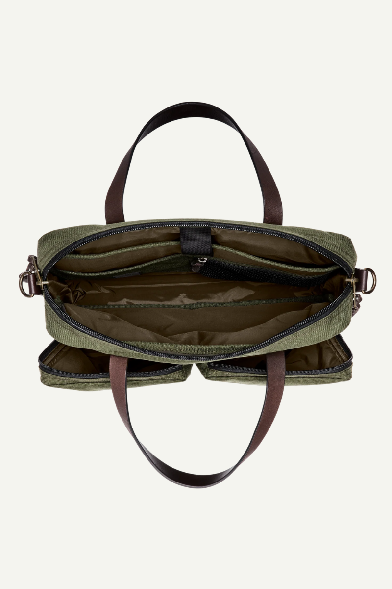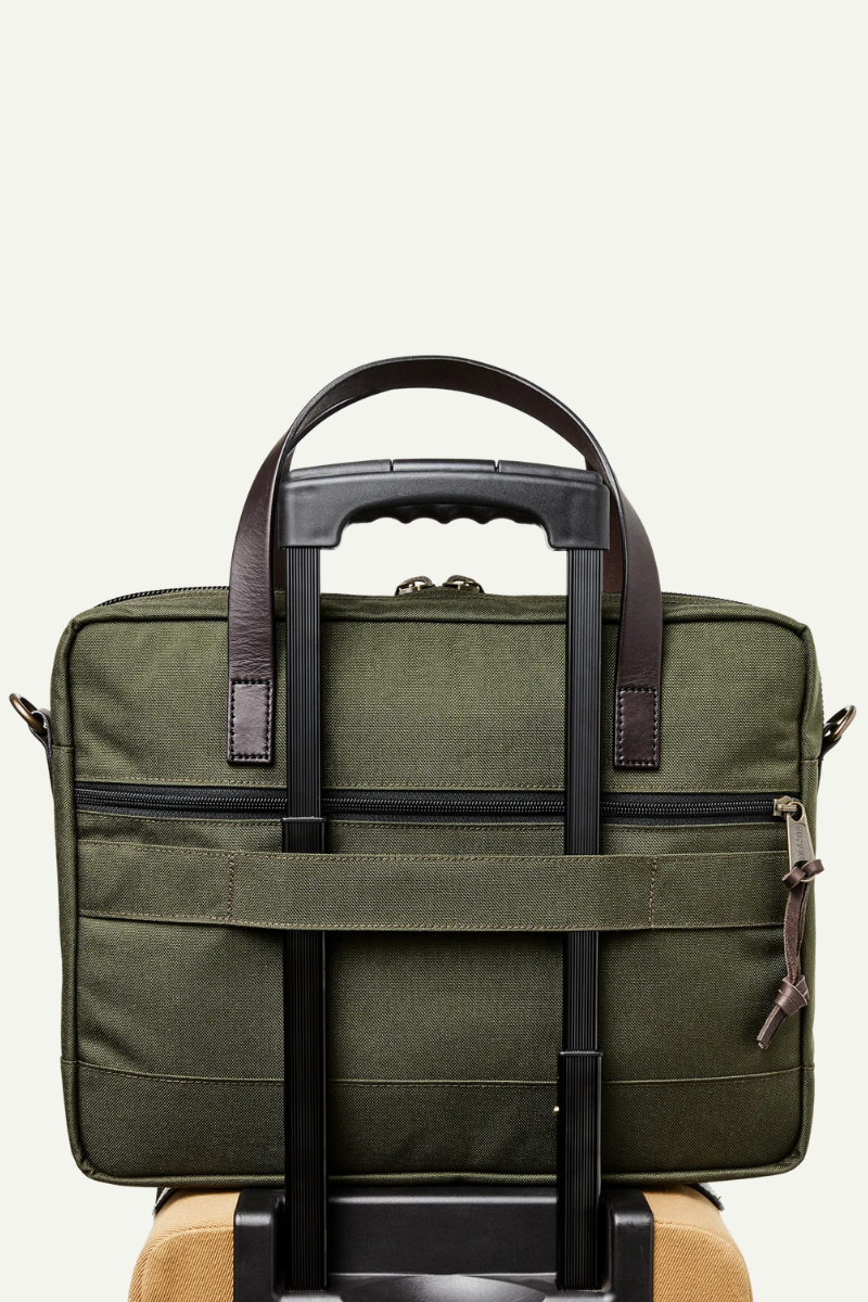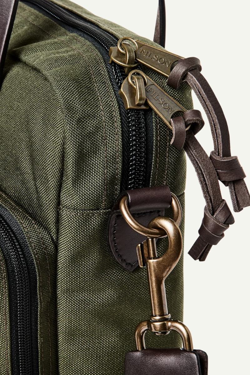 Built for long days and longer miles, this briefcase blends the design of Filson’s highest-capacity work bag with the lightweight durability of rugged 1000D nylon. It offers the structure and organization of a classic brief, without the weight of traditional waxed canvas.
