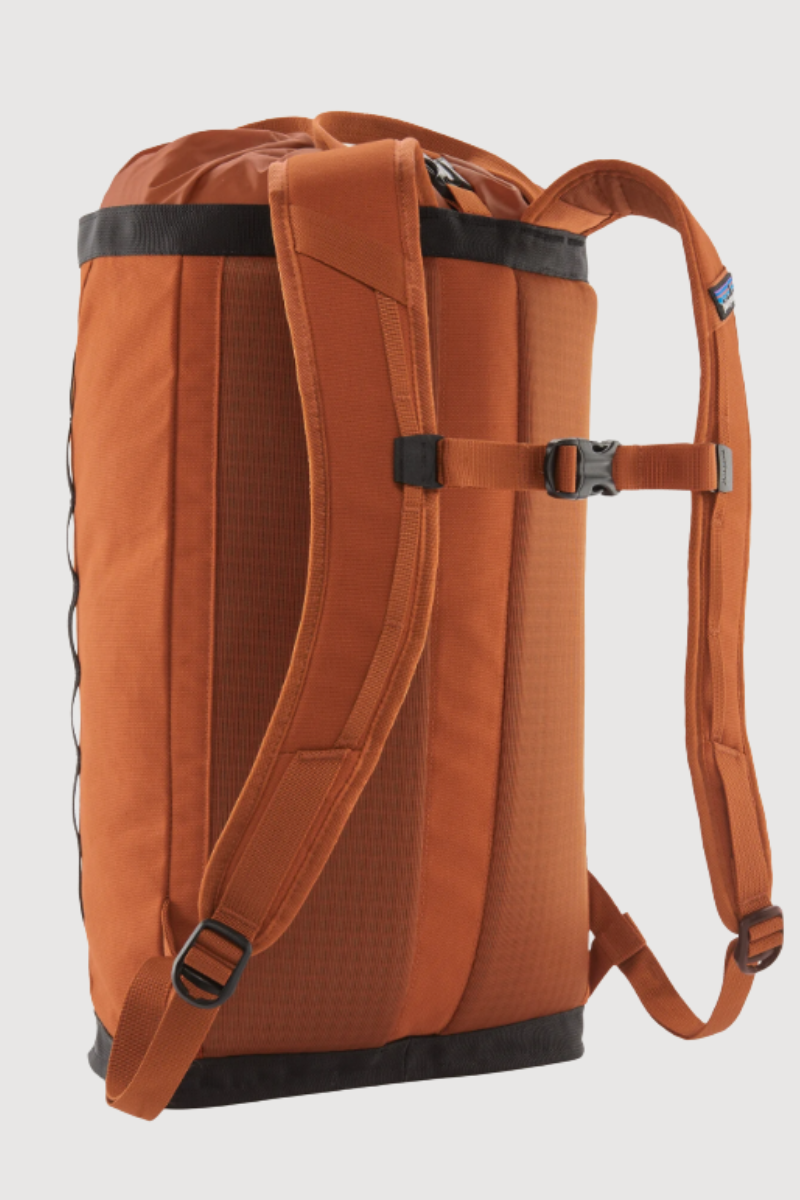 Climbing pack-inspired design has lash points for clipping on shoes, extra gear or a water bottle; pack stands up on its own for easy loading