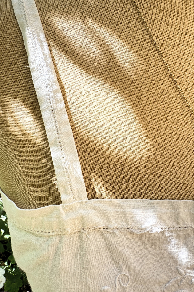 The Fleur Blanche Dress is a graceful expression of French vintage simplicity. Hand picked in Paris, France, this 100% cotton treasure drapes with a soft, natural elegance. Likely made between 1900–1930, it reflects the refined craftsmanship and gentle style of early 20th-century French undergarments. Its delicate embroidery across the bodice adds a quiet touch of romance, while the slender straps and easy silhouette evoke the effortless beauty of another era.