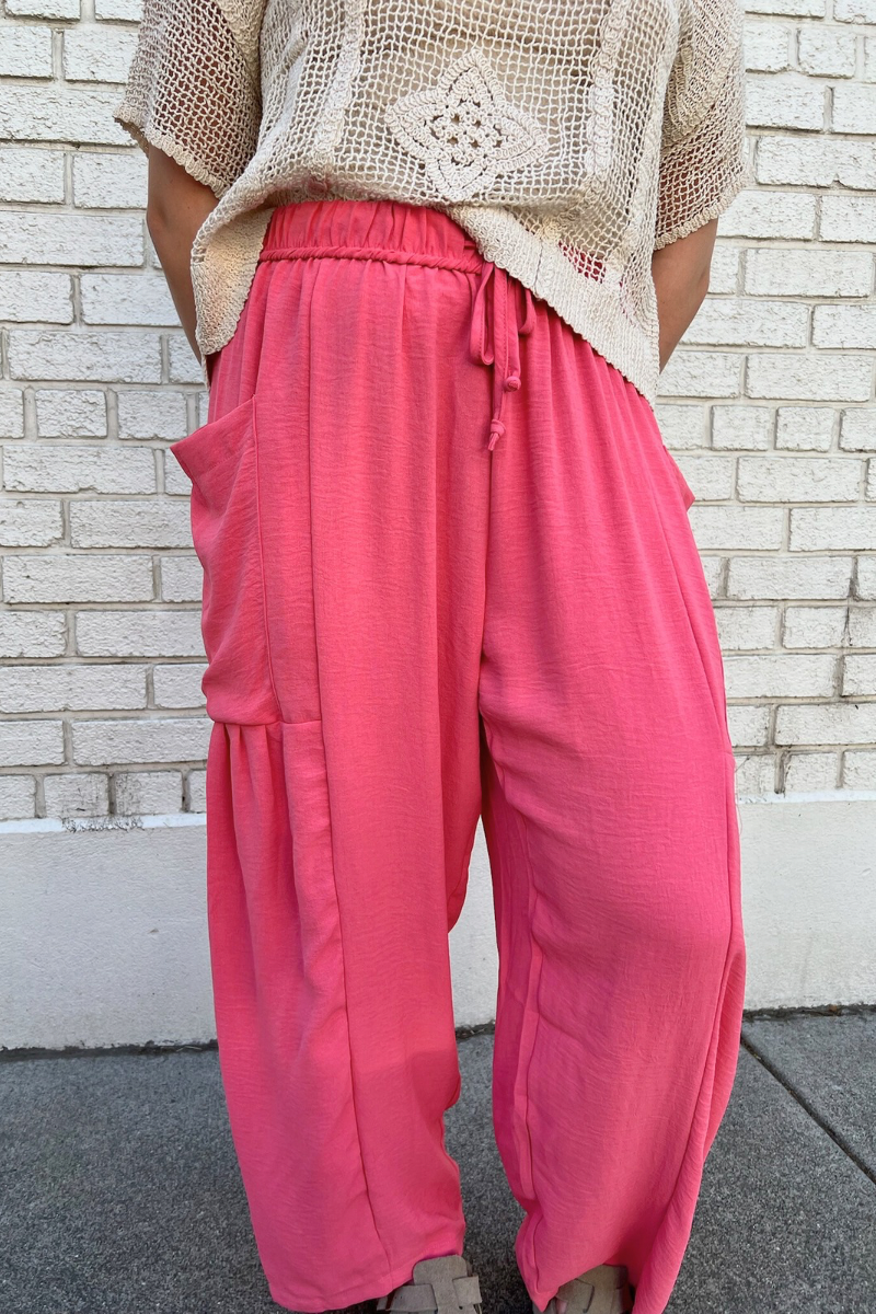 Experience ultimate comfort and effortless style with our Free Flow Pleated Pants. These loose, baggy pink pants are designed to keep you comfortable whether you're running errands or relaxing at home.