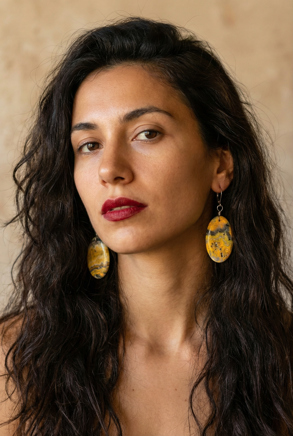 Large Bumblebee Jasper Earrings – 91 carats total of bold, vibrant beauty.