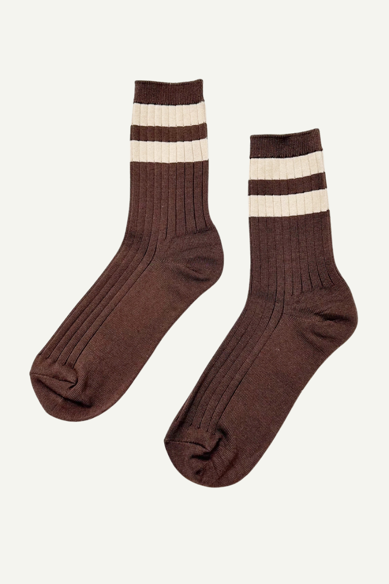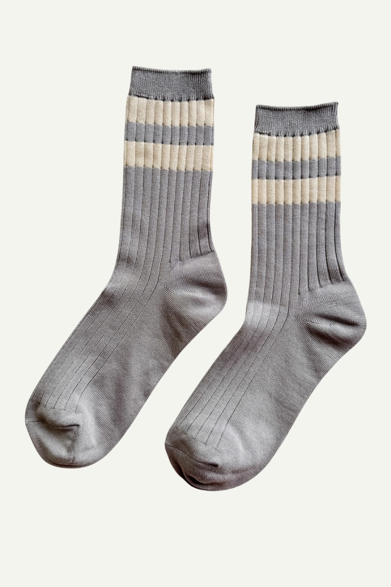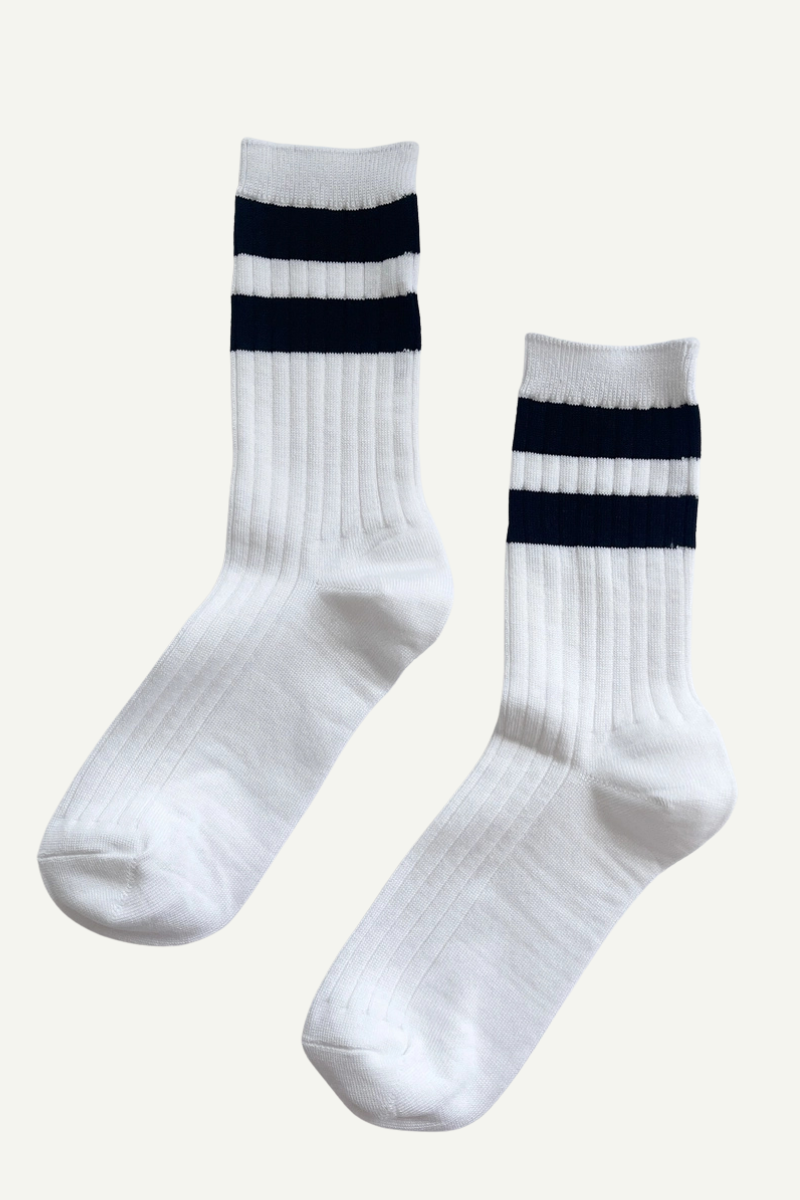 A playful twist on the beloved Her Socks — now in stripes. These rib-knit socks are the perfect height for everyday wear, adding just the right amount of charm to sneakers, boots, or clogs. Soft cotton blend with a touch of stretch makes them comfortable, versatile, and easy to style.