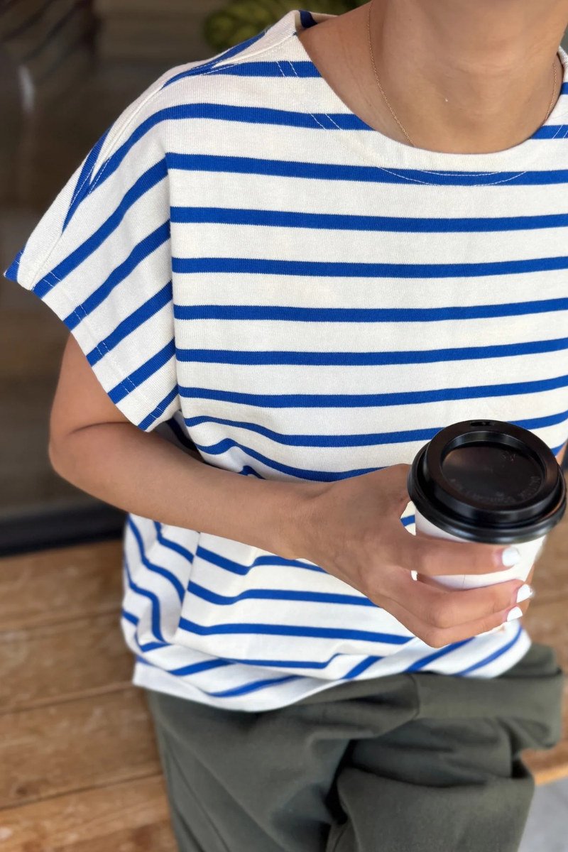 Add a touch of Parisian charm to your wardrobe with the Marseille Top. Inspired by the timeless Breton stripe, this piece features a classic boat neckline and an oversized, full-length silhouette that drapes effortlessly over the hips. Crafted from durable, heavyweight cotton, it offers the perfect balance of structure and softness.....equally suited for relaxed weekends or dressed-up outings.