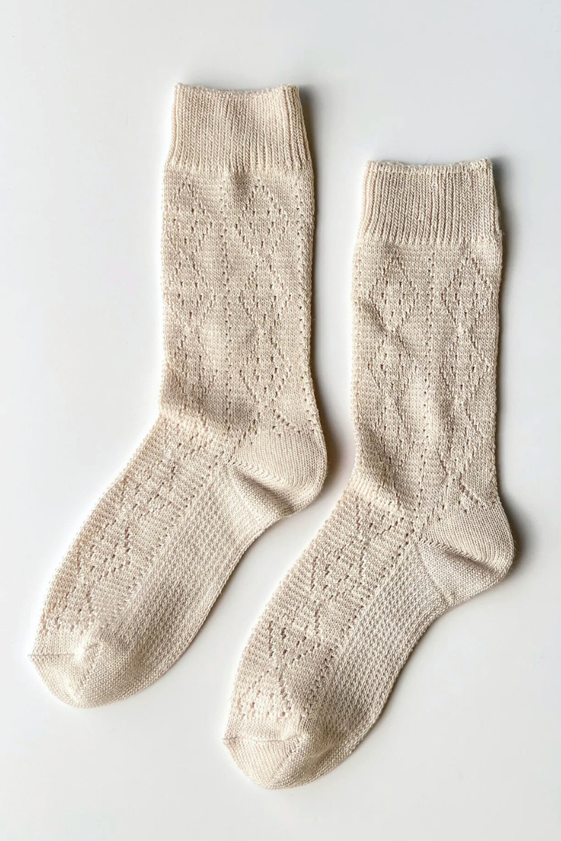 A refreshing take on pointelle. Delicate in detail, the Modal Eyelet Sock echoes the look of our Pointelle Cashmere with a similar knit pattern, while feeling lighter in weight—closer to our Trouser Sock. Soft with a silky-smooth hand, it’s an easy, breathable pair for warmer days, perfect with sandals or flats.