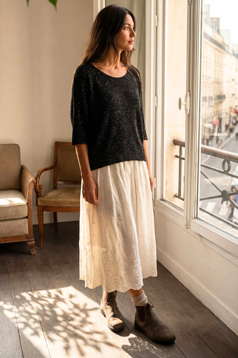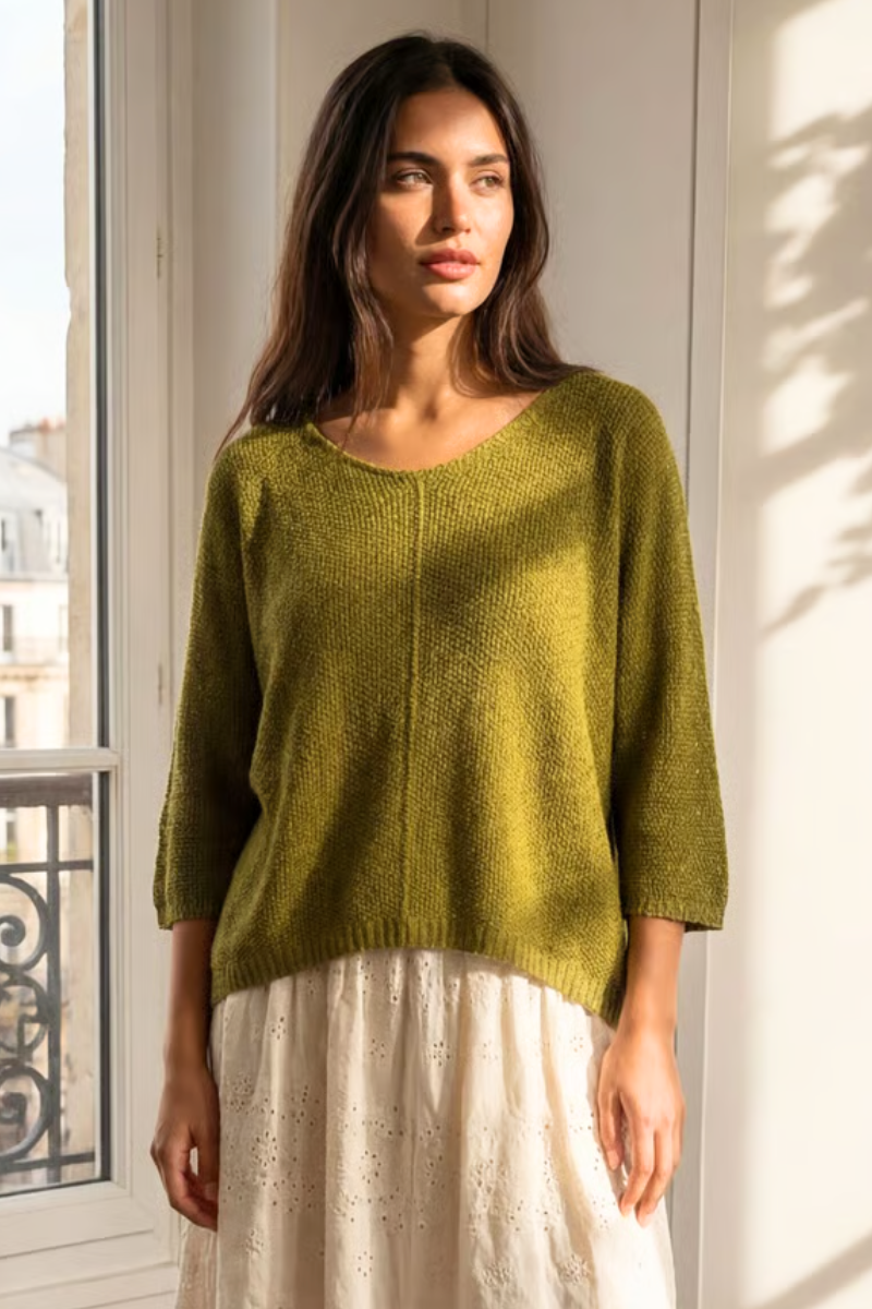 An easy, understated knit with beautiful texture and drape. This 3/4 sleeve sweater is made in Italy from a soft modal blend that feels lightweight, breathable, and incredibly comfortable against the skin. The relaxed silhouette makes it effortless to wear, whether layered or on its own, while the slightly sheer knit adds subtle depth and interest.