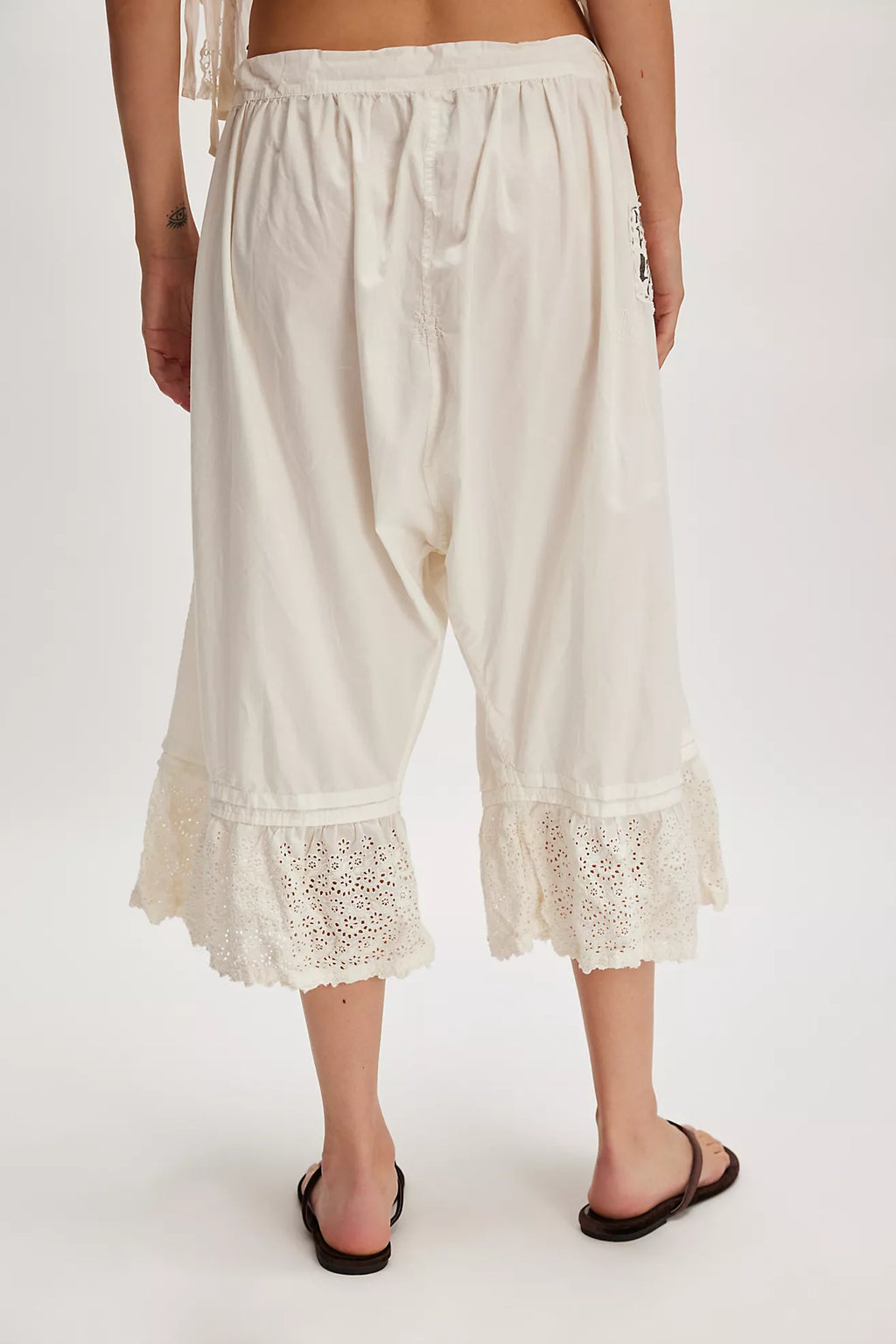 Luxury cotton poplin bloomers with delicate pleats, ruffles, and hand-finished details. Drawstring waist and exclusive Love Co. patch.