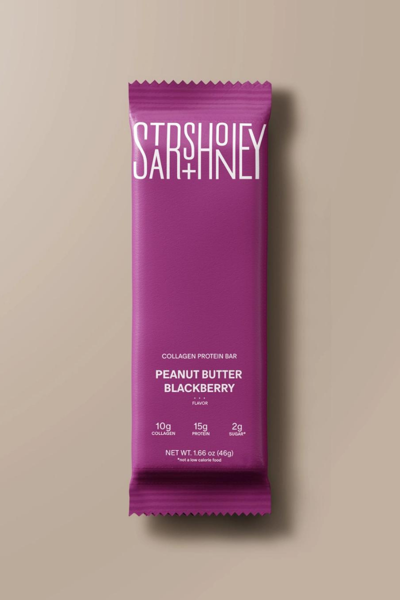Collagen, Peanuts, Tapioca Fiber, Allulose, Defatted Peanut Flour, Pea Protein, Sunflower Lecithin, Organic Vegetable Glycerin, Oats, Oat Fiber, Oat Bran, Blackberries, Coconut Oil, Natural Flavors, Acacia Gum, Sea Salt, Blackberry Powder, Monk Fruit