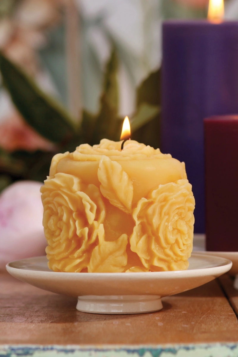 Bring timeless romance and quiet elegance into your space with our Beeswax Rose Blossom Pillar Candle. Hand-poured and intricately sculpted from 100% pure beeswax, this floral pillar glows with a warm, golden light and releases a subtle, natural honey aroma—no added fragrance needed.
