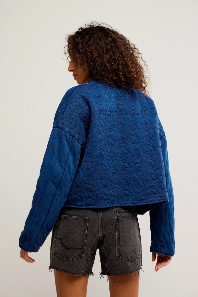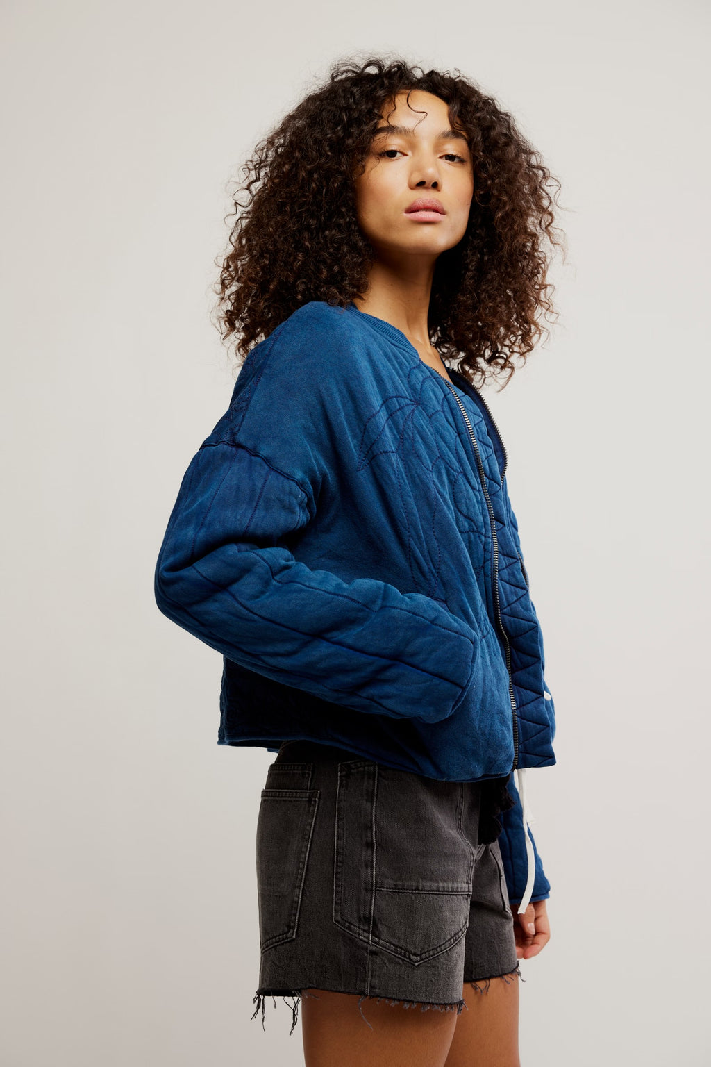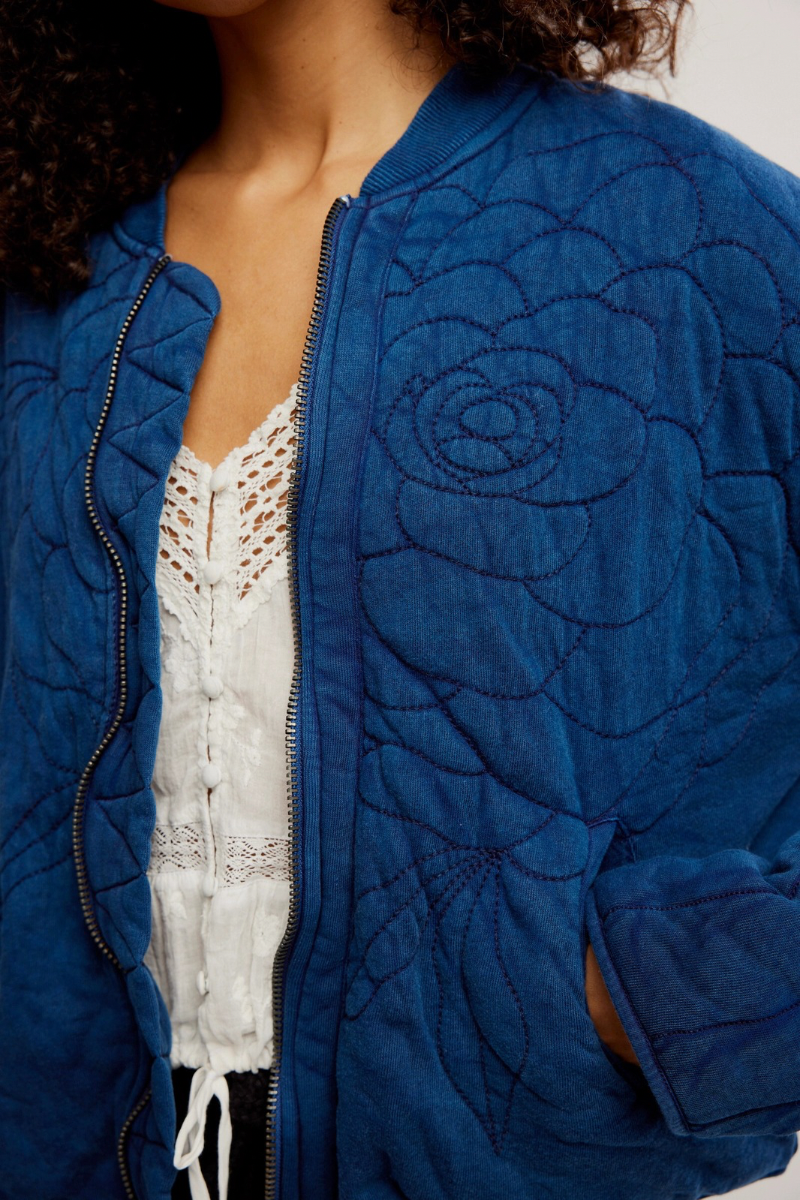 Quilted to perfection, this zip-up sweatshirt is featured in a bomber-inspired silhouette with a rose-embroidered bodice for a subtle femme touch.