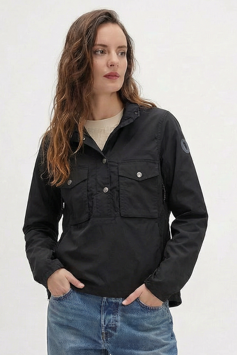 Fjällräven’s classic Räven jacket featuring Specialized’s on-bike-fit to make this the perfect jacket for both biking and hiking adventures. Torso in G-1000 Lite Stretch fabric for wind-resistance where it’s most needed, and 4-way stretch on the back and lower sections for great freedom of movement. Reflective details on the articulated, engineered sleeves that have been optimized for bike riding. Two-way zippered ventilation openings in the sides. Secure zippered hand pockets and inside mesh pockets that are reinforced at the bottom. Two chest pockets with snap buttons – perfect for your wallet, phone etc. Easy to pull on and has an adjustable cinch at the hem. Stowable hood. Part of the Fjällräven/Specialized series for urban rides and bikepacking adventures.