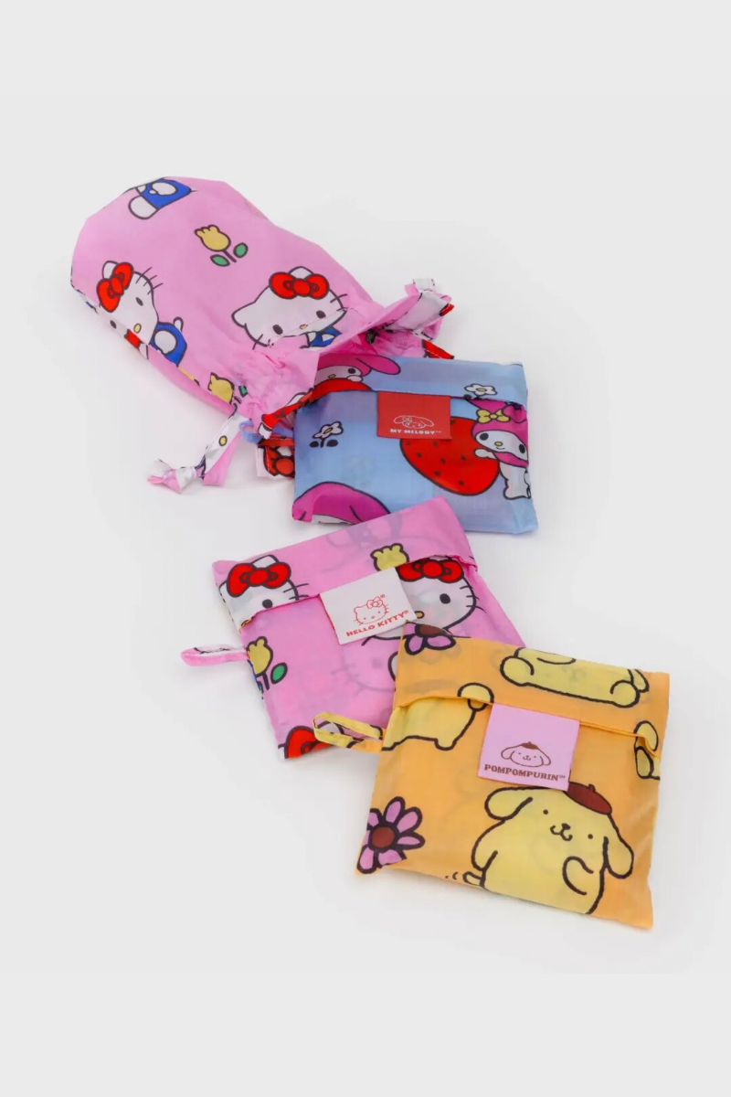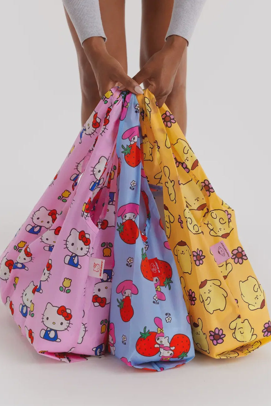 Bring a little joy to your everyday errands with this special edition Hello Kitty & Friends Baggu set. Featuring playful floral prints of Hello Kitty, My Melody, and Pompompurin, each bag is lightweight, durable, and folds into its own pouch for easy storage. Perfect for gifting or keeping all to yourself!