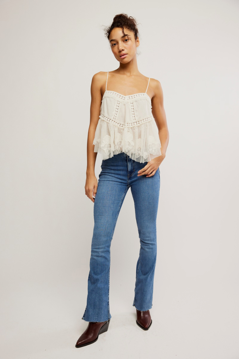 Oh-so dreamy in every way, this delicate cami from Intimately features all of our favorite femme details like a tiered tulle peplum, floral appliques, and delicate twisted straps. Pair with your favorite cropped sweater to add a fun touch of lace peeking through.