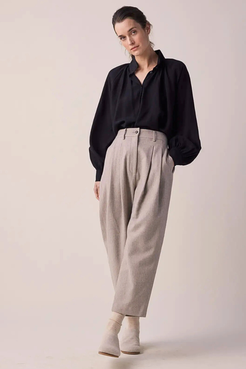Sleek, refined, and effortlessly versatile — the Taped Ankle Wool Pants are a modern take on classic tailoring. Crafted from 100% premium wool, they offer a soft, luxurious feel with just the right amount of warmth. The taped ankle detail adds a subtle yet distinctive edge, elevating the clean silhouette with contemporary appeal. Designed for a flattering fit, these ankle-length trousers transition seamlessly from the office to special occasions, showcasing your favorite footwear with ease.