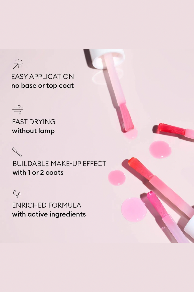 The first care polish with an intense ultra glossy finish to enhance the natural radiance of your nails. A hybrid between care and color, this 83% bio-sourced all-in-one perfecter nourishes and revives the natural glow of your nails. A powerful green cocktail to boost your nails' natural radiance. Enriched with sweet almond oil and natural extracts, it provides an instant rosy glow and mirror-like shine. Nails are regenerated and nourished in a single step.