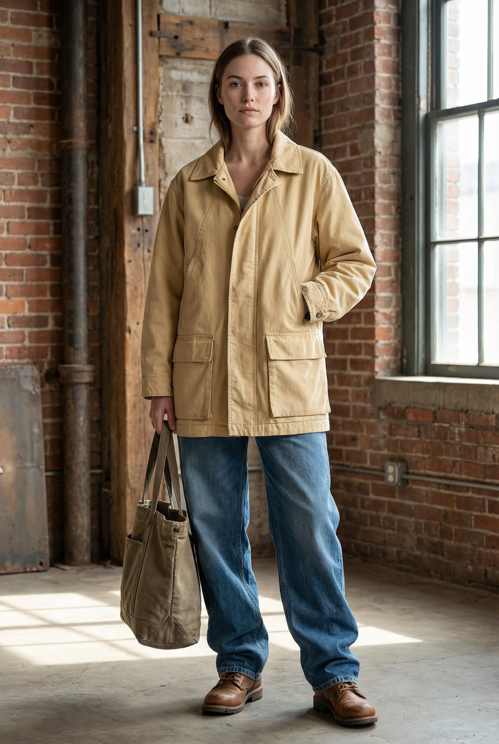 Hand-picked in Paris, this vintage Boutique Paris jacket is a timeless classic with a hint of utility charm. Crafted from a soft cotton canvas in a golden sand tone, it features a zip and button front closure, quilted lining for light warmth, and roomy front flap pockets.